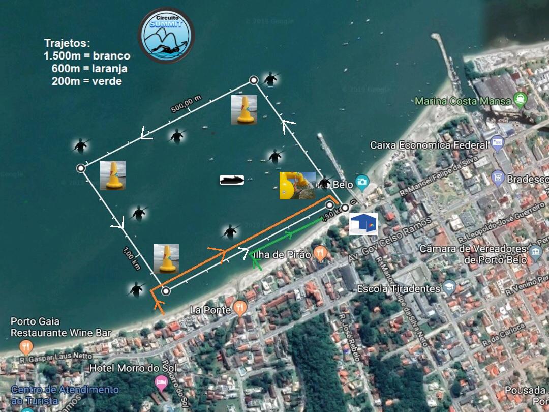 Os percursos serão montados na Baía de Porto Belo, cidade conhecida pelas belas praias e com alto fluxo de turistas ao longo do ano. As provas de 3 km, 1,5 km e 600m vão acontecer no sábado, dia 5, e a prova principal de 5 km acontece no domingo dia 6.