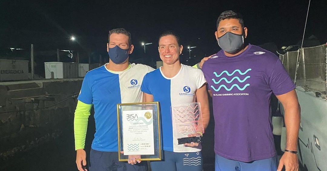 “Foi uma experiência única. A temperatura da água estava 22ºC, mas como eu tenho um baixo percentual de gordura teve momentos que o frio bateu forte. O que me ajudou a superar foram os simulados, já que nas últimas semanas havia feito alguns treinos em piscina aberta com temperatura na casa dos 19°C e também fiz um treino em represa. Muito feliz de ter conseguido concluir minha primeira ultramaratona aquática da carreira”, contou a atleta que já foi campeã pan-americana e sul-americana master nas piscinas.