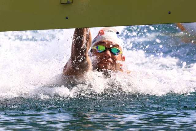 A prova masculina foi ainda mais acirrada e decidida no final com dobradinha francesa. O italiano Gregorio Paltrinieri, que ficou de fora dos 10 quilômetros, estava na prova e terminou em quarto lugar. Na arrancada final para a chegada, Paltrinieri decidiu trocar de lado e acabou prejudicando seu companheiro Domenico Acerenza e favoreceu os dois franceses.