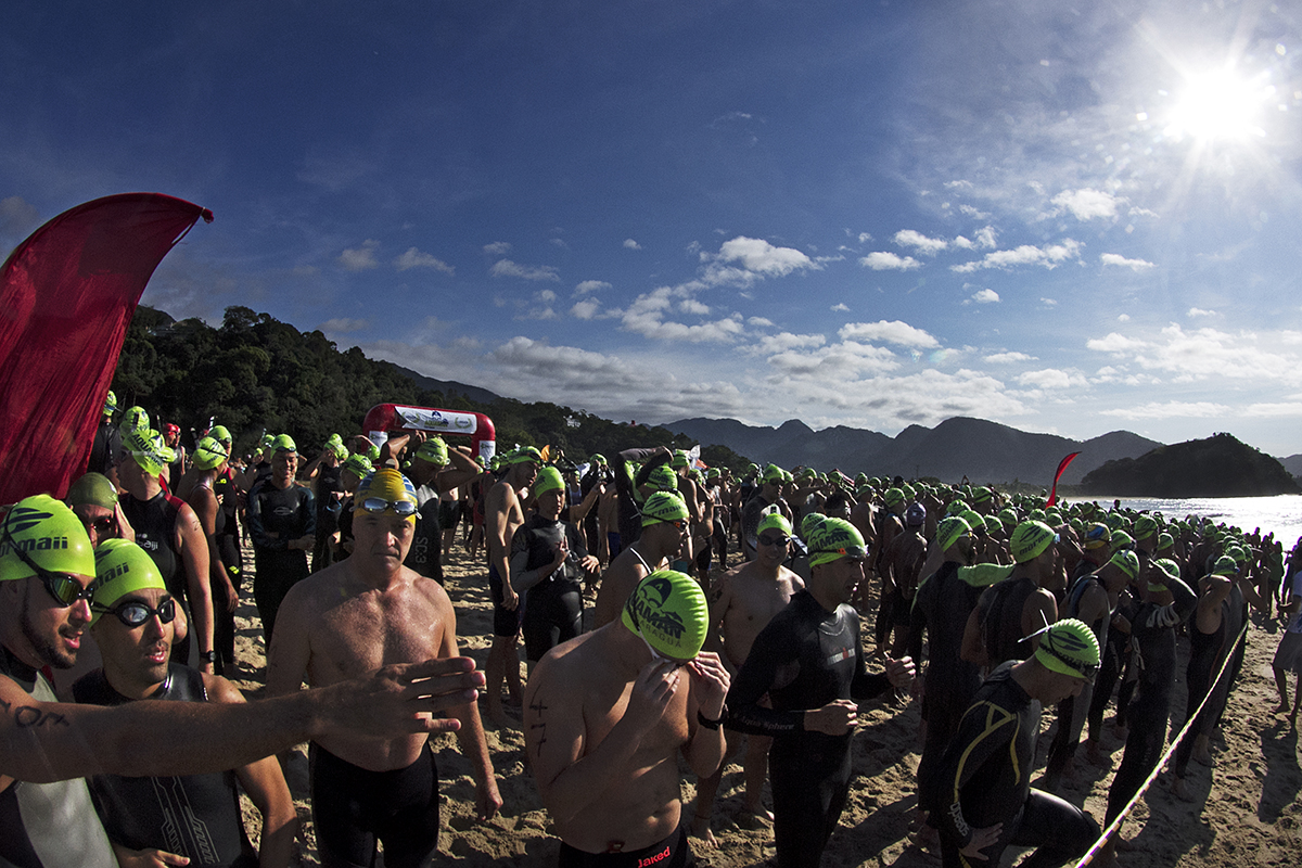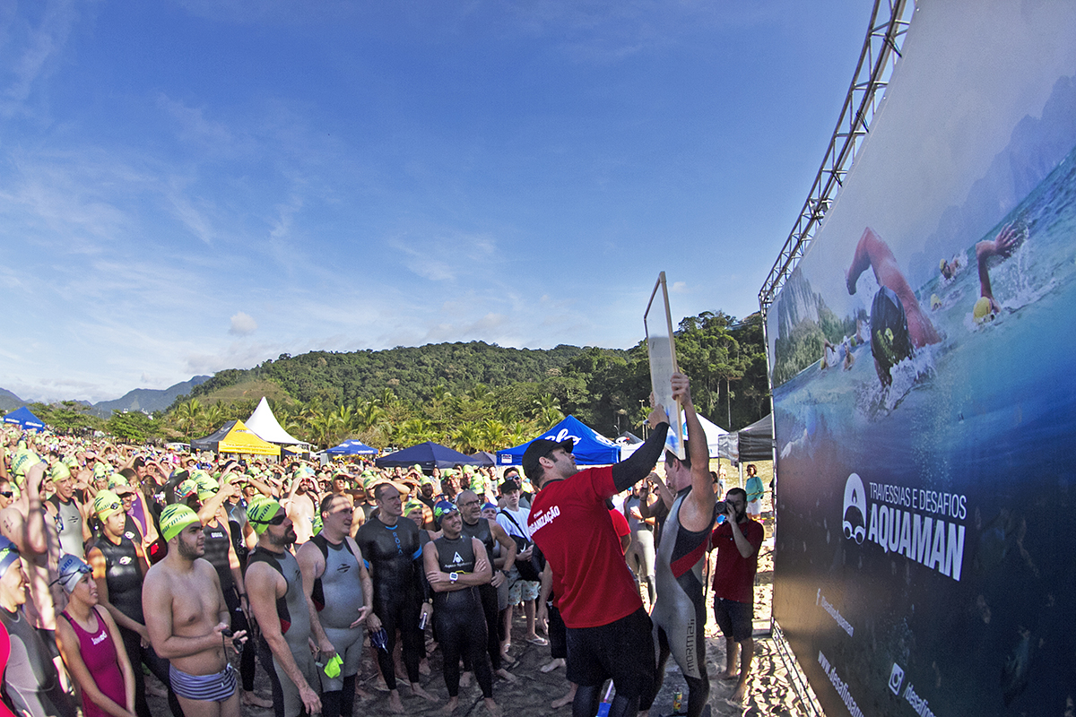 A terceira edição do Desafios Aquaman foi um sucesso. A Praia da Cocanha, uma das mais bonitas de Caraguatatuba, no litoral norte de São Paulo, recebeu os 900 atletas inscritos para as provas que aconteceram neste domingo (16). O maior número de inscritos nesta edição foi na prova de 7 km, também a principal do evento mostrando a popularização cada vez maior de provas de longas distâncias nas águas abertas. Os atletas tiveram que passar, obrigatoriamente, pelo ponto de hidratação na Ilha do Tamanduá (localizada aproximadamente na metade do percurso) e depois enfrentar o mar agitado para cumprirem a distância total.