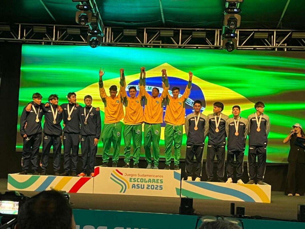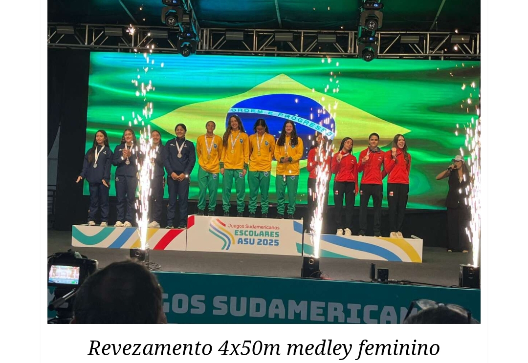 100% de vitórias brasileiras no primeiro dia dos Jogos Escolares Sul-Americanos em Assunção, no Paraguai. Seleção Brasileira Escolar venceu todas as oito provas e ainda ganhou mais três medalhas de prata num início explosivo no novo Centro Aquático de Assunção, a mesma piscina que recebeu os Jogos Panamericanos Júnior em agosto deste ano.