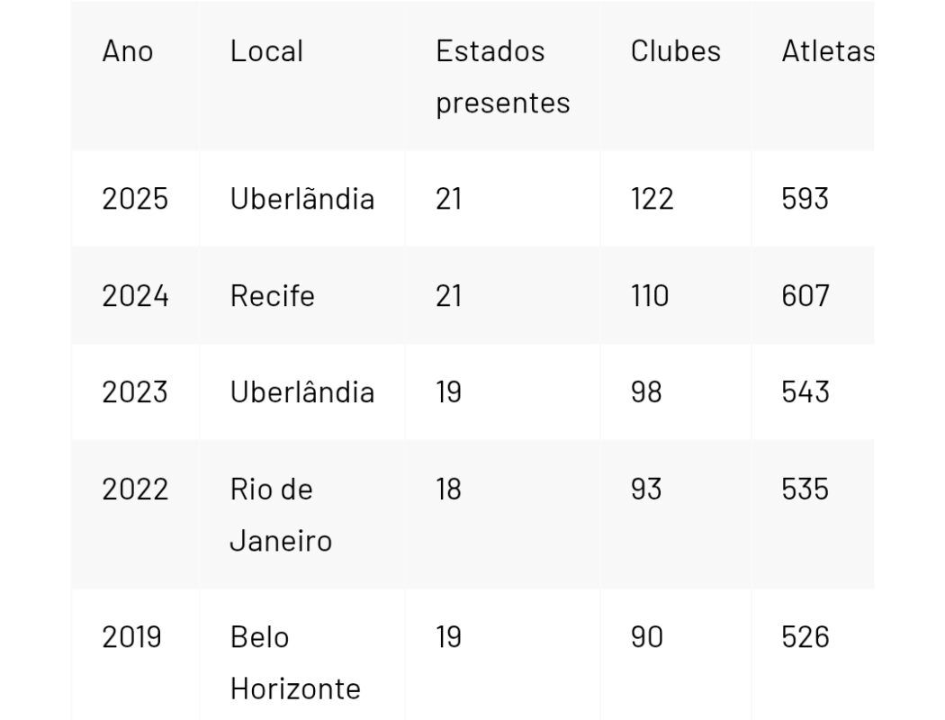 Confira os últimos cinco anos de competição comparando os números de participantes: