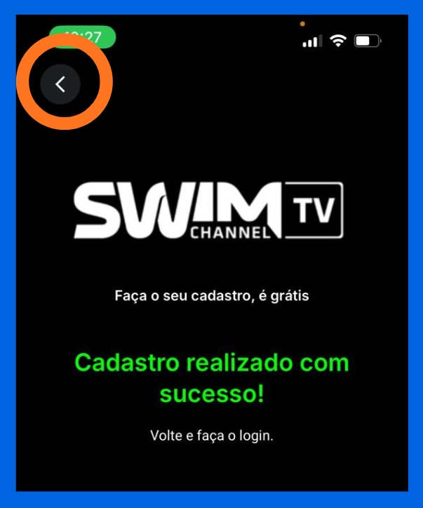 Com o cadastro concluido clique em “voltar” lá em cima conforme a imagem, e é só logar com seu login e senha!