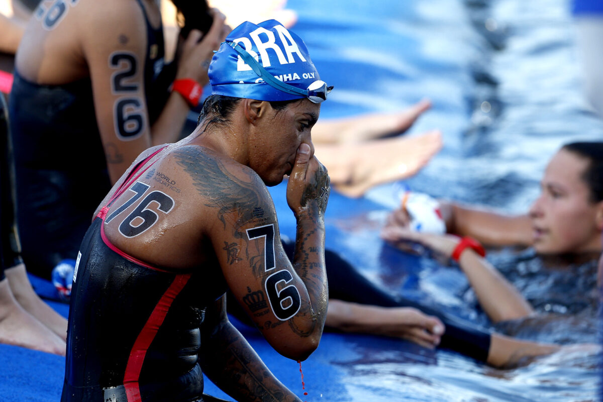 Ana Marcela Cunha foi a melhor brasileira na prova e também muita superação e resiliência nestes 5 km. A multicampeã esteve sempre no segundo pelotão que brigava pelo bronze, mas na reta final ela acabou ficando um pouco para trás e completou na oitava colocação com 1h03min10s2. Após a prova ela percebeu que estava com o cotovelo sangrando, resultado de um corte sofrido em alguma boia no percurso. Mesmo com o machucado ela foi até o fim. Viviane Jungblut não fez uma boa prova e terminou na 21ª colocação com 1h04min56s70. Vivi chegou a estar no top 10 na primeira metade da prova, mas acabou não conseguindo acompanhar os primeiros pelotões.