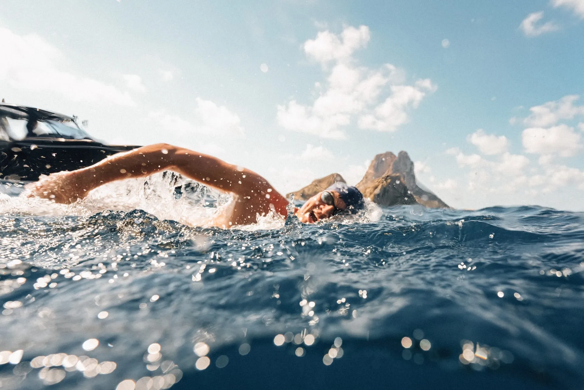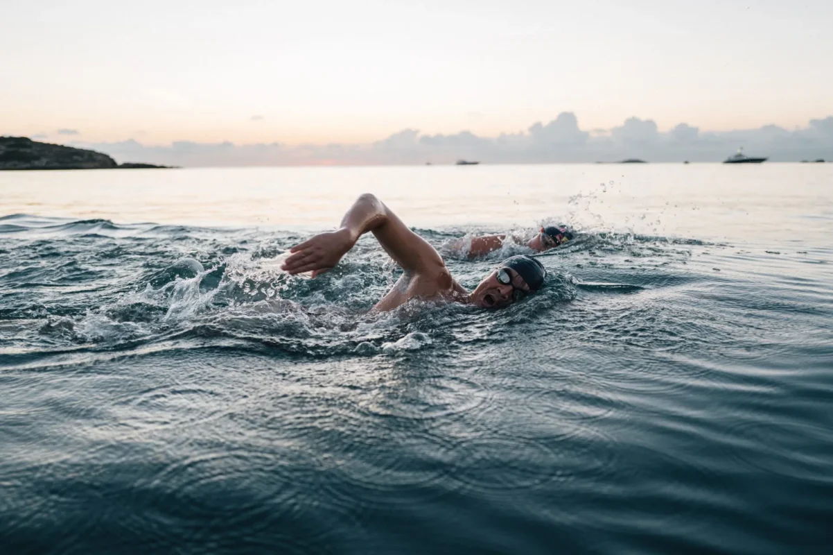 Tanto Nathalie (Pohl) quanto eu entramos na natação em Ibiza confiantes, mas realistas; sabíamos que seria um grande desafio. A ilha nunca havia sido contornada, e embora alternássemos a cada duas horas, ainda era uma longa distância — 104,5 km. Por volta da 26ª hora, durante a sétima rotação de Nathalie, ela parecia realmente exausta. Foi um momento tenso para todos; eu podia ver a preocupação nos rostos da equipe de apoio, especialmente do pai dela, Andreas. Eu entrei na água por um pouco mais de tempo para dar a ela um descanso extra e, nos últimos quatro quilômetros, durante seu último trecho, nadei ao lado dela até a chegada. Às vezes, apenas estar lado a lado faz toda a diferença.
