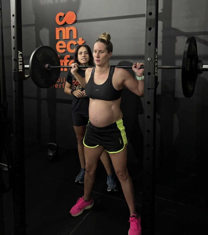 O treino de Funcional e Fortalecimento são fundamentais, hoje não faço 2 sessões por dia como antigamente, mantenho meus treinos na Connect Life em Ubatuba , orientada pela professora Mariana Oliveira e pelo fisioterapeuta João Rafael, inclusive ambos foram essenciais para tirar alguns receios que eu tinha quanto a atividade física na gestação, principalmente dúvidas quanto a associação de “diástase” e alguns exercícios. Eles sempre foram atras de artigos científicos validados que trouxessem evidencias do que é bom fazer e evitar.
