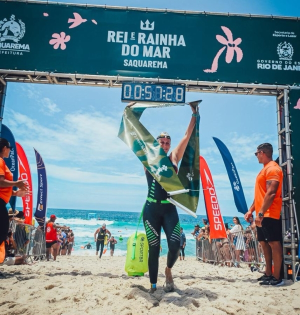 25 de Janeiro/2026 – Rei e Rainha do Mar (Saquarema – RJ): Já com 17 semanas no 5º mês de gestação, venci a prova Challenge no Geral Feminino, controlando cada movimento com o frequencímetro cardíaco. A prova estava prevista para largada da praia de Itaúna, e teve de ser reajustada para largada na praia da Vila por conta das fortes correntes do dia. Mesmo na Vila a arrebentação não estava leve, dessa vez não larguei na primeira fileira, esperei a série de ondas passar, para ai então começar a nadar no momento correto, evitando “tomar um caldo” forte e também evitando ficar em apneia. Claro que o fato de hoje eu morar em uma praia com ondas frequentes, me fez ter confiança para encarar esse cenário na condição de uma gestação.