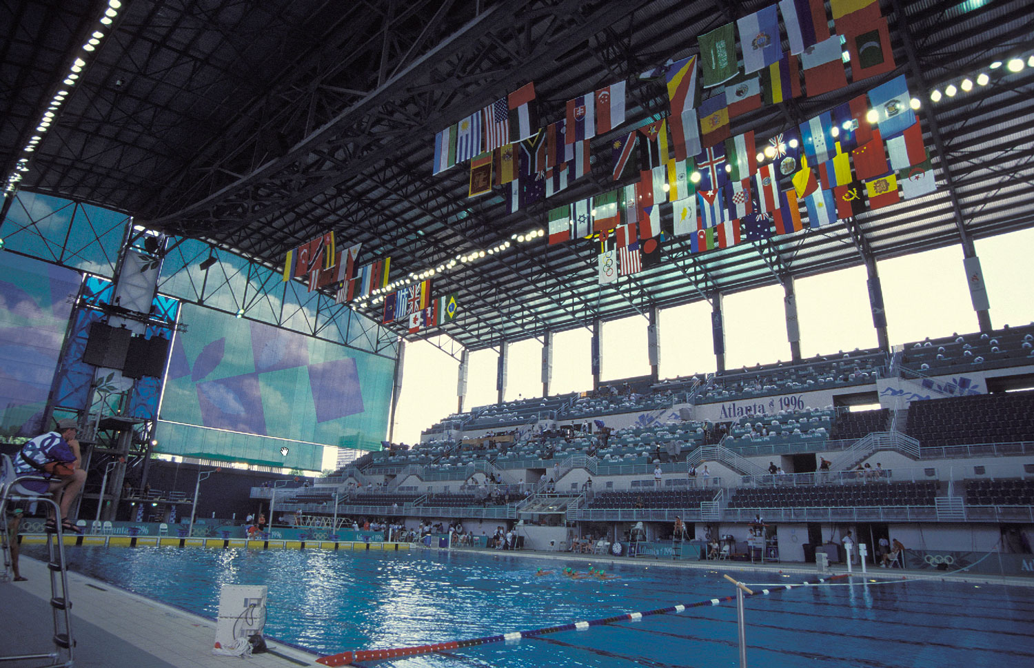 Atlanta-1996: Piscina da edição centenária dos Jogos Olímpicos, a Georgia Tech Aquatic Center esta localizada dentro do campus da Universidade de mesmo nome. Até os dias de hoje ela é utilizada pelos alunos, pelos times universitários de esportes aquáticos e também para sediar eventos da natação americana. Em 2011 sediou o The Duel in the Pool, quando a seleção americana nadou contra um combinado europeu.