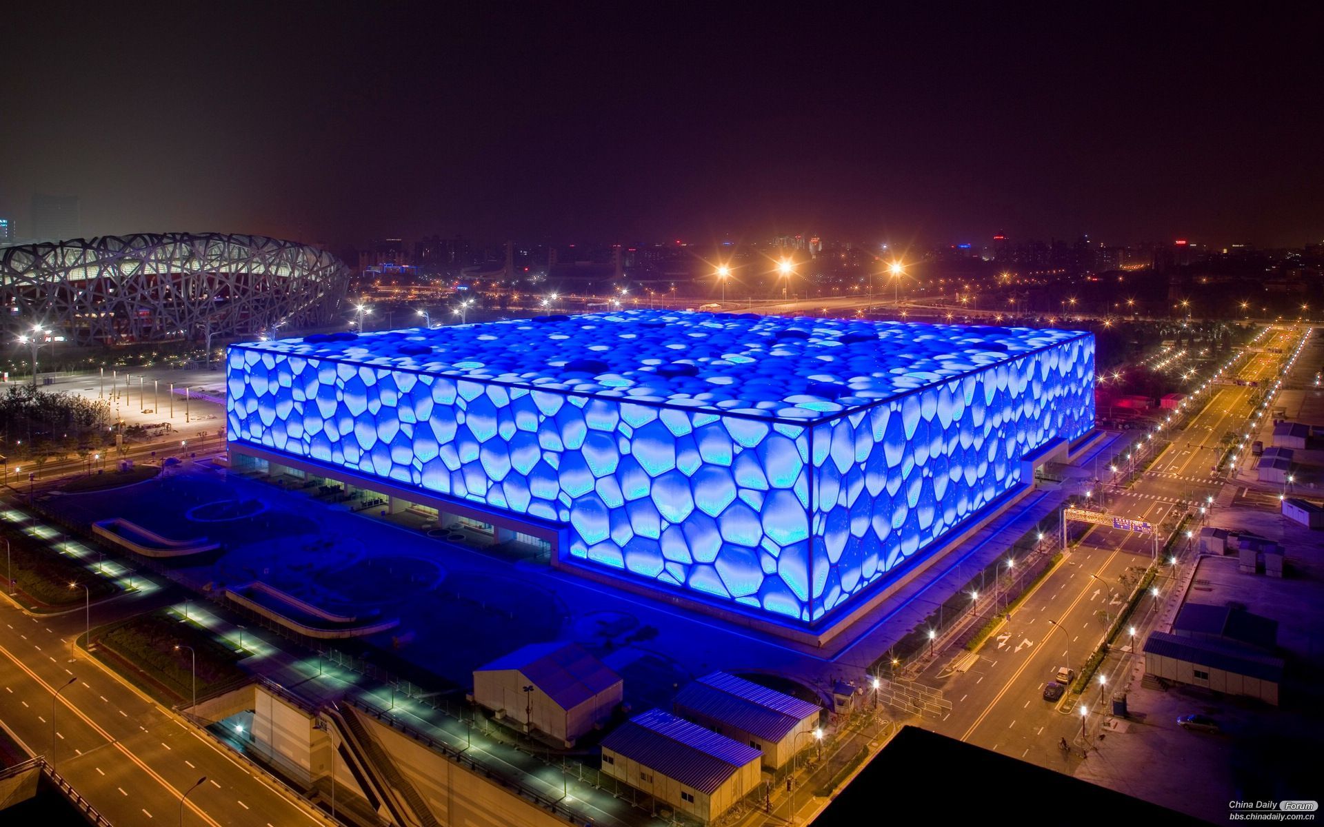 Pequim-2008: Uma das construções olímpicas mais arrojadas, tinha o teto revestido de três mil bolhas de plástico translúcidos e ultra resistente, que a noite ficavam coloridas, dando a sensação de estar debaixo d’água. Por essa característica o Beijing National Aquatics Center ganhou o apelido de Cubo D’Água. Atualmente a piscina, onde o Brasil ganhou até hoje sua única medalha de ouro na natação com Cesar Cielo, ainda funciona intercalando eventos de natação com atividades de recreação e comerciais.