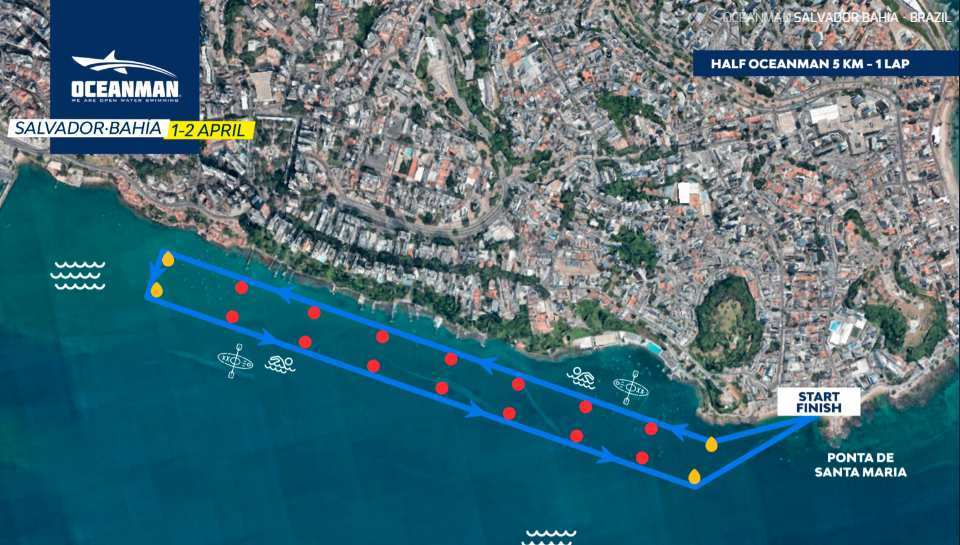 Na capital baiana as disputas serão realizadas no Porto da Barra e terão seis provas. A principal é a Oceanman que terá 10 km de percurso, mesma distância da maratona aquática. Teremos ainda o Half Oceanman com 5 km e Sprint com 2 km, que deverão ser as provas mais procuradas pelos nadadores.