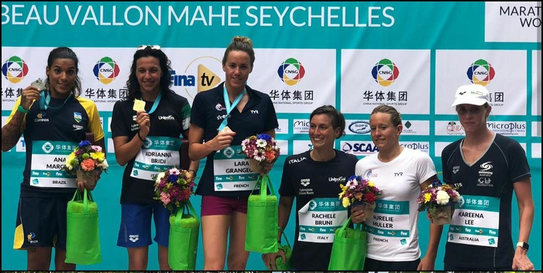 Já nas águas abertas a ilha de Seychelles recebeu a segunda etapa do FINA Marathon Swim Series. Em uma prova forte com a presença de medalhistas olímpicos e mundiais, Ana Marcela Cunha foi o destaque do Brasil ao conquistar a medalha de prata. A brasileira nadou os 10 km em 2h01min34s1 e chegou atrás apenas da italiana Arianna Bridi, campeã com 2h01min33s9 de prova. O resultado deixou a brasileira na liderança do ranking do circuito com 1500 pontos contra 1150 pontos das vice-líderes Arianna Bridi e Rachele Bruni. Ana Marcela busca em 2019 o pentacampeonato no evento.