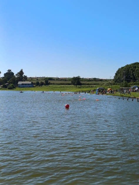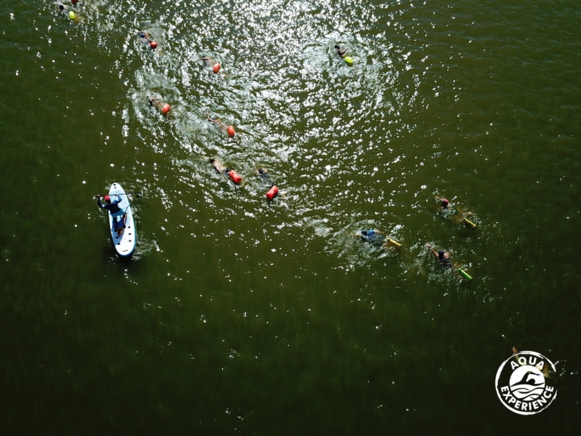 O lago oferecia um circuito de 600 metros por volta, permitindo organização eficiente dos grupos. Cada nível realizou um treino específico, guiado pelos professores, respeitando experiência e objetivos individuais. A temperatura da água — cerca de 24 °C — lembrava piscina aquecida, favorecendo adaptação e desempenho.