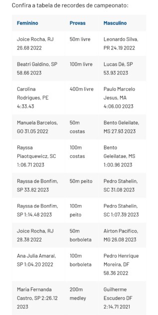 O novo JEBs, Jogos Escolares Brasileiros foram retomados pela CBDE em 2022, em novo formato, e com idades entre 12 a 14 anos de idade. Competição deste ano acontece em Recife, na piscina do Santos Dumont, nos dias 1o e 2 de Outubro.