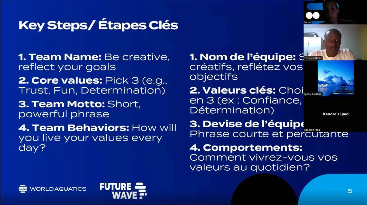 Em janeiro deste ano, a World Aquatics realizou uma nova atividade do projeto Future Wave, desenvolvido pelo Comitê Olímpico Internacional (COI) através da iniciativa Solidariedade Olímpica, World Aquatics e Africa Aquatics. O programa é voltado para jovens atletas de 14 a 16 anos e seus treinadores, e a última ação do projeto contou com uma sessão virtual com a participação de 40 pessoas de diferentes países.