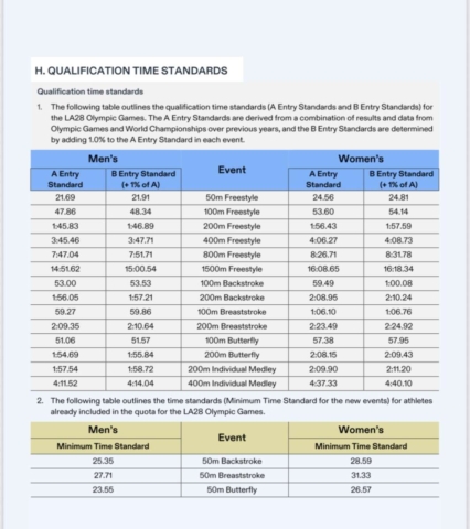 Atletas clasificados con marca A en una prueba, podrán sumar otra prueba, siempre que tenga en esta la marca B. Tal procedimiento anteriormente era restringido y controlado por World Aquatics/COI, ahora está permitido.