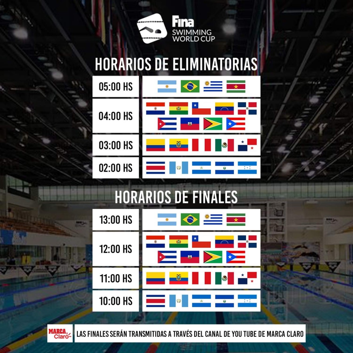 Si bien FINA todavía no confirmó si habrá o no transmisión oficial de streaming. Marca Claro ya publicó que las finales se podrán ver en toda Latinoamérica a través de su canal de You Tube.